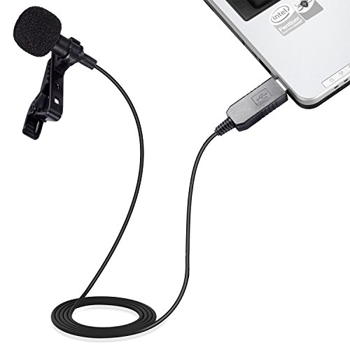 PChero USB Lavalier Lapel Clip-on Omnidirectional Condenser Mic Microphone for Laptop PC Computers Mac, Perfect for Interviews, Audio Video Youtube Recording, QQ, MSN, Skype, Internet karaoke