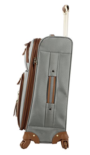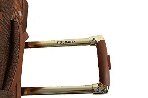 Steven Madden Luggage Soft Side Luggage delivers great durability together with a fashionable design. It is made from polyester fabric to provide your belongs with maximized protection. The use of 360 degree spinner wheels and telescopic push button handle system enables high stability over a variety of surfaces especially crowded airport. This sharp looking piece with Steve Madden signature lining will keep you traveling in style. The dimensions of the suitcase with wheels, handle and stuffed front pocket: 25.5 X 16.2 X 11.7 inches The dimensions of the suitcase without wheels and handle: 24 X 16 X 9 inches This item is not a carry-on, but there is a carry on version of it available in the same style and build The storage capacity is approximately 69L not expanded. An additional 6 liters is available by expanding the suitcase The weight of the luggage is approximately 8.9lb This luggage is covered by a 5 year manufacturer's warranty. 0 |
