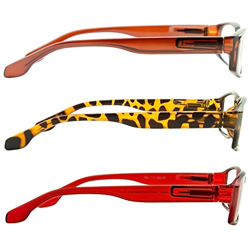 Product Description Tired of choosing between style, function, durability and fashion? At a fabulous price? With a 3-pack of ingeniously stylish reading glasses at an unbeatable price, you're no longer forced to choose! There's more. Since each pair of his or hers, ultra-durable, sex-appeal enhancing glasses come in their own individual Clean-Sense microfiber bag, you can eliminate annoying smudges before they become a problem for crystal-clear focus, every time. And with the Sure-Flex Comfort Spring Arms, to the Dura-Tight Screw fittings, you know you're making a wise investment-for a miniscule fraction of the cost of designer store brands. Worried about size? You'll love how the Sure-Flex Comfort Spring Arms work in unison with the Dura-Flex Hinges eliminates that pinchy-tight, or slide-down-your-nose challenge, so you slip them on and instantly experience the perfect fit. From the moment you place these sleek vision enhancers on your face you'll experience... ? Crystal clear vision, in bed, at the office, or anywhere else you need to see with perfect clarity ? Ultimate comfort, important if you find yourself battling long days of reading small print ? Upgraded style, vital if you need a pair of glasses that makes you or your partner shine all day ? Solid construction, with a micro-fiber bag which cradles, protects and cleans through the toughest days