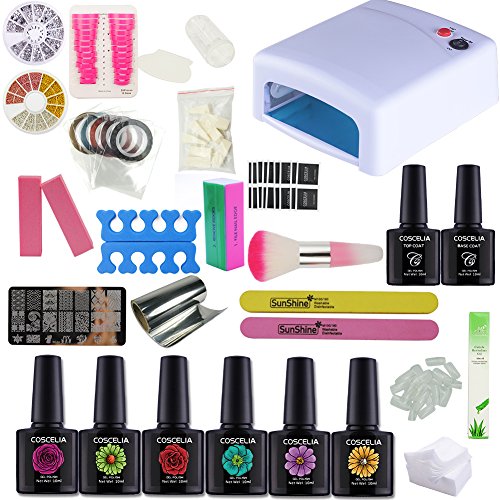 유니크 몰(UniqueMall)네일 팁(칩) 키트 젤 네일 경화용 라이트 36W UV라이트 톱 젤 베이스 젤 네일 드라이어 메니큐어용 레진 uv 메니큐어 키트