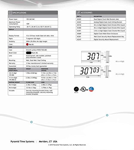 -. Title : Pyramid 4" character, 4-Digit Red LED RF Wireless Digital Clock, 110V (9D44BR)