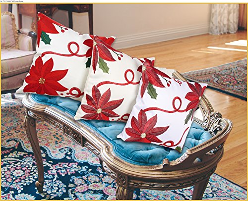 HOMEY LOOK - Colorful and delicate embroidered poinsettias design. Enjoy the warm feel, crisp colors and updated look that this festive cushion cover will bring into your home. Perfect decoration for the Christmas Season.