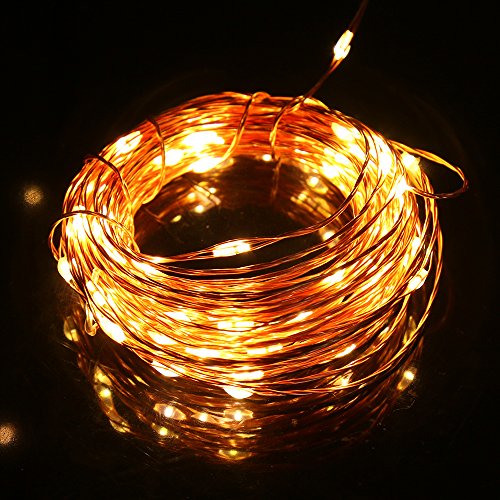 Product DescriptionFeatures: Material: Copper LED Color: Warm White (2700-2900K) LED Quantity: 100pcs Length:33ft/10m Package Content: 1 x 33ft copper wire led string light 1 x AC/DC Power supply0