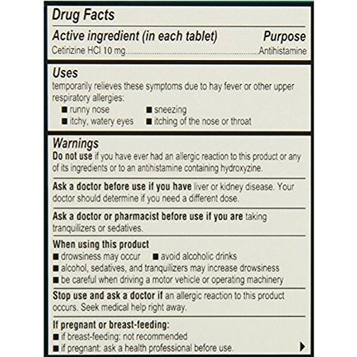 Studio : McNEIL-PPC, Inc. Publisher : McNEIL-PPC, Inc. Binding : Health and Beauty Product Description Uses: Temporarily relieves these symptoms due to hay fever or other upper respiratory allergies: Runny nose. Sneezing. Itchy, watery eyes. Itching of the nose or throat. Questions? Call 1-800-343-7805 (toll-free) or 215-273-8755 (collect). The trade dress of this Zyrtec® package is subject to trademark protection. Active ingredient made in Switzerland. www.zyrtec.com. McNeil-PPC, Inc. 2012. 0