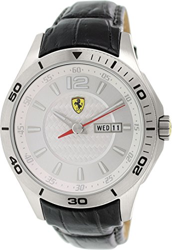 -. Title : Ferrari 0830092 Black Leather Silver Dial Date & Day Men's Watch