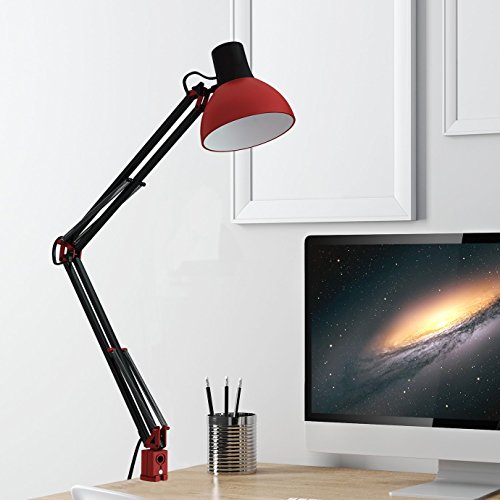 ToJane 30" Adjustable Swing Arm Desk Lamp,Red Architect Table Lamp, C-clamp Clip on Studio Workbench Lamp(bulb sold separate)