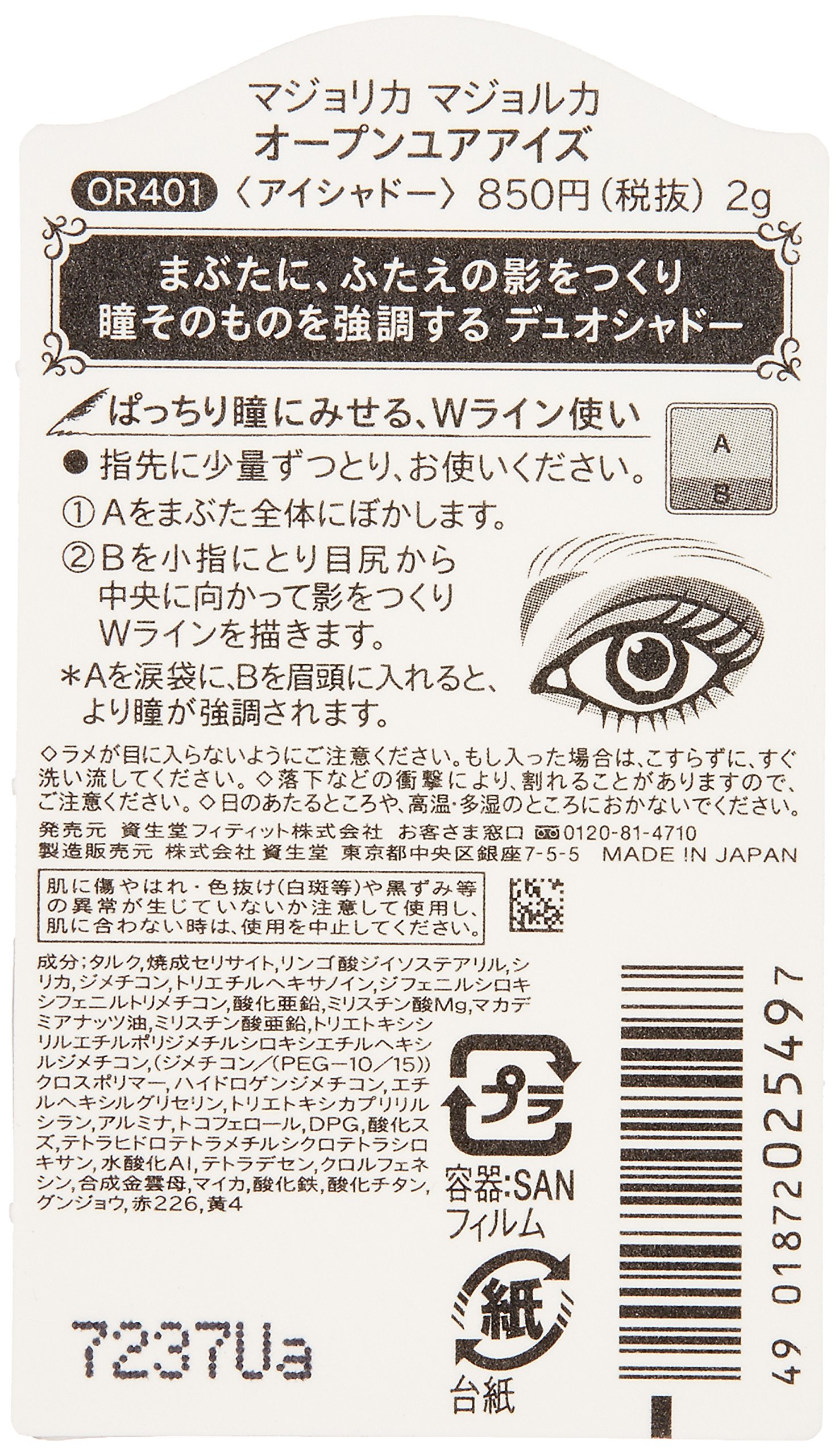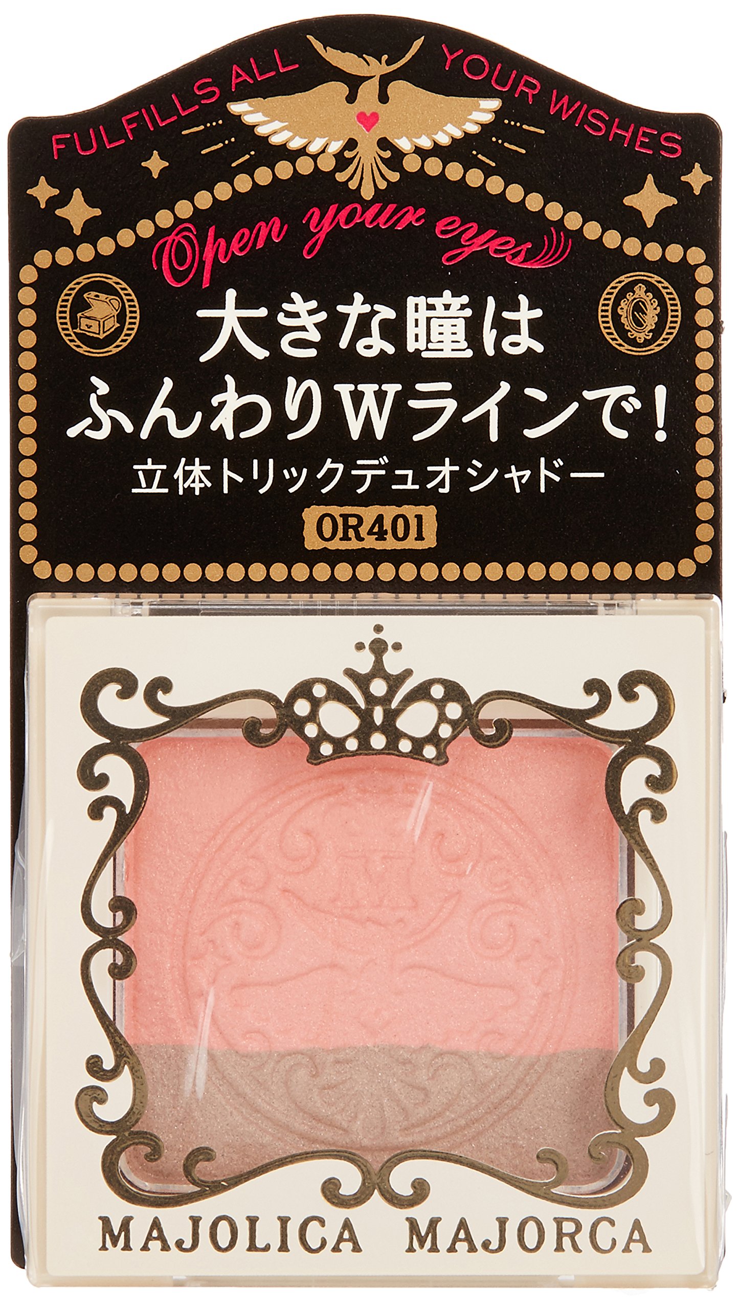 A two-color eye shadow that creates a shadow of the eyelids and emphasizes the eyes itself in the eyelids.