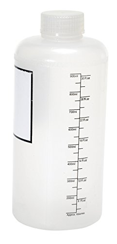 Vestil BTL-N-PP-32-LBL Narrow Mouth Polypropylene Round Graduated Plastic Bottle with Label and Natural Cap, 32 oz Capacity, Translucent