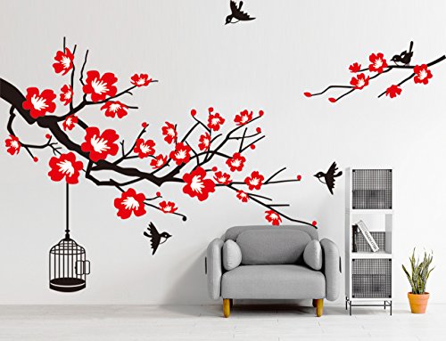 -. Title : CaseFan Plum Blossom Tree Wall Sticker Vinyl Removable for Livingroom Kid Baby Nursery Home Mural Paper DIY Decals 70.9x47.2",Black+Red