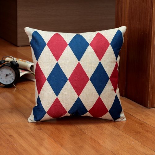 - Title : DuoLe Cotton Linen Square Decorative Cushion Cover Sofa Throw Pillowcase 18" x 18",Rhombus Blue and Red