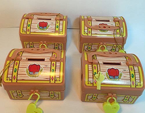 - Feature : 4 Pirate Party Favor Sets / Each Set Contains: 1 Treasure Chest Coin Bank (4" x 3") / 1 Eye Patch, 1 Skeleton Key Chain, 2 Pirate Scopes, 1 Pirate Yo-Yo, 1 Pirate Bones Necklace / 4 Sets per order! / Perfect for kids parties!