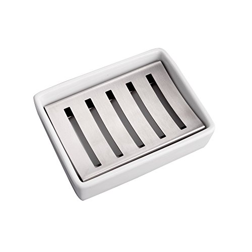 -. Feature : Material: Made of high quality SUS304 stainless steel and premium cermic, very sturdy and much longer service life than plastic. / Dual-Layer Design: The stainless steel tray can be removed so you can easily wash it out. The water drains off the soap so the soap doesn't melt and extends the life of your soap. / Modern Design: The perfect combination of high quality stainless steel and cermic, elegant and generous design highlight your taste. / Wide Application: They work great in the shower, bathroom, bathtub, counter top, kitchen, etc. For soap, dish washing sponge, etc. / Dimension: Stainless steel tray: 10L x 7.2Wcm ( 3.9 x 2.8inch ); Ceramic dish: 11.7L x 8.8W x 2.9Hcm ( 4.6 x 3.4 x 1.1inch ). Comes with IMEEA lifetime warranty, buy with confidence!