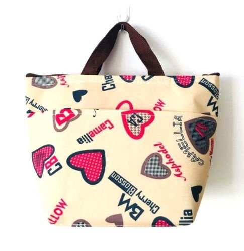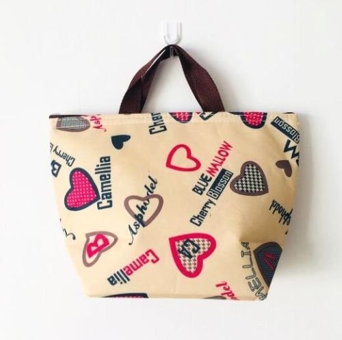 EatingBiting(R) Waterproof Insulation Warmer Cooler Cute Heart Beige Lunch Bag Tote Insulated Cooler Carry Bag , For Travel and Picnic, Very Nice Lunch Bag , Charming Holidays Gifts