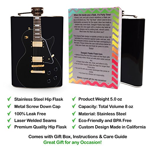 Binding : Kitchen Product Description Electric Guitar 8 ounce Silver Metal Hip Flask for Liquor and Alcohol The Hip Flask has made a modern day comeback and is one of 2017's hottest fashion trends! The problem with other flasks is that they are just... blah! The Swagstr hip flask was designed with fun in mind and is ready to get the party started!