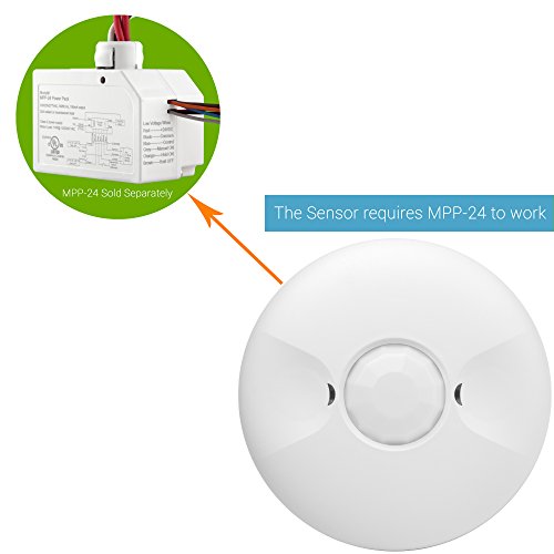 -. Feature : Ceiling mounted sensor / passive infrared sensor detects full 360° degree multi level field of view. Ceiling sensor controls incandescent, CFL, and LED lighting. / Low voltage ceiling sensor switch consumes very little energy, providing you an energy effiecient solution for the home, office and business without compromising the performance. / Passive Infrared / PIR motion sensor technology. Ceiling mount sensor features adjustable time delay with DIP switch from 5 sec to 30 min. Adjustable sensitivity from 50% - 100%. / Low voltage ceiling sensor / occupancy sensor ceiling light features 360 degree view, multi-level coverage up to 1,200 ft². UL / CUL Listed. California Title 24 Compliant / Motion detector required ceiling sensor light accessories: *Enerlites MPP-24 power pack required!* 2 year manufacture warranty. Great for businesses, commercial and industrial properties.
