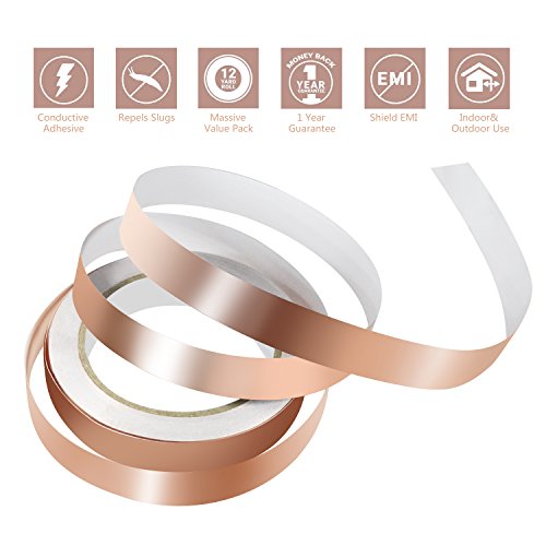 URXTRAL Copper foil tape with Dual Conductive Adhesive(0.79inch X 22yards)for EMI Shielding, Slug Repellent, Stained Glass, Soldering, Paper Circuits, Electrical Repairs, Grounding