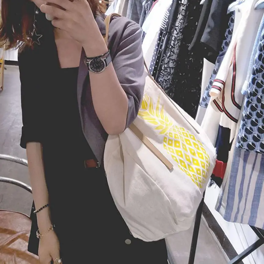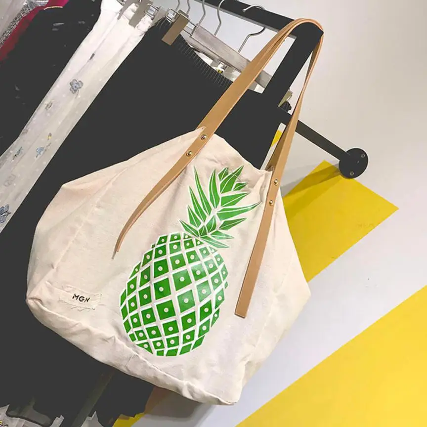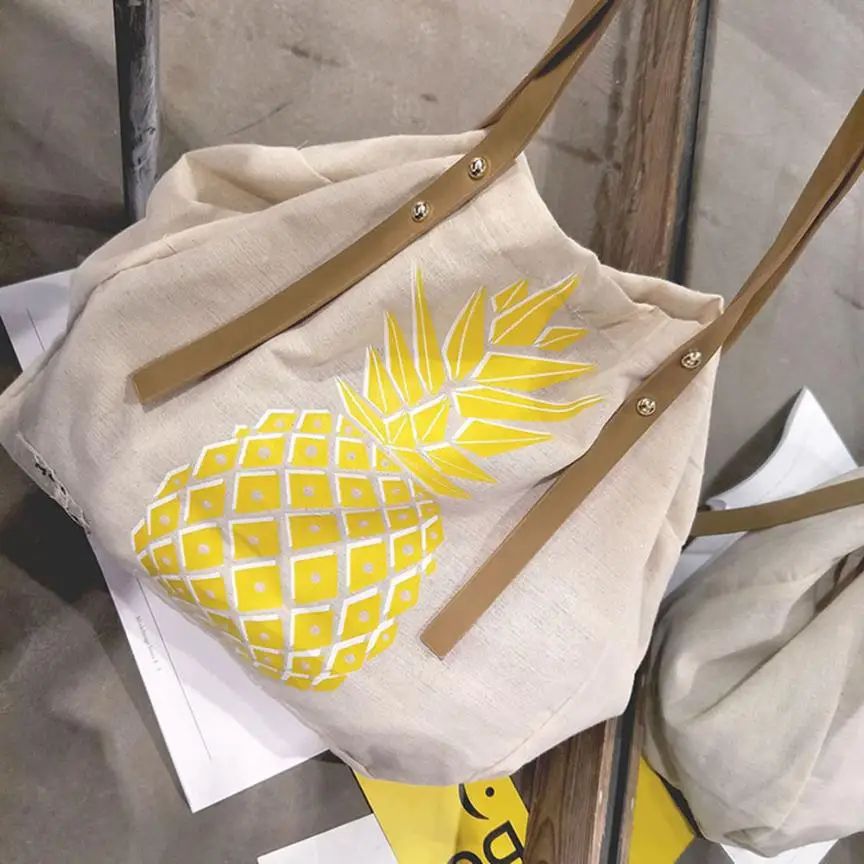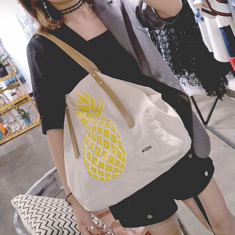 Women Canvas Pineapple Print Handbag:women's handbags