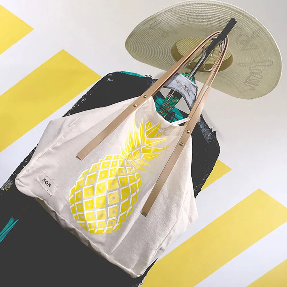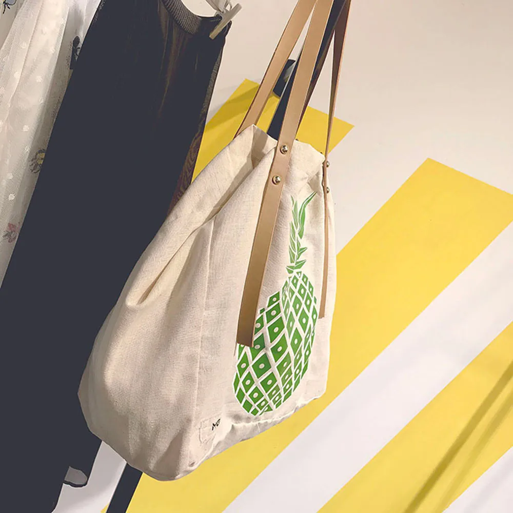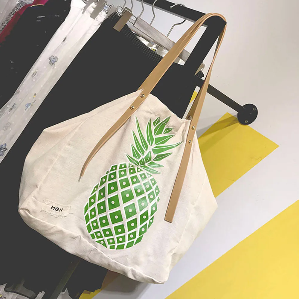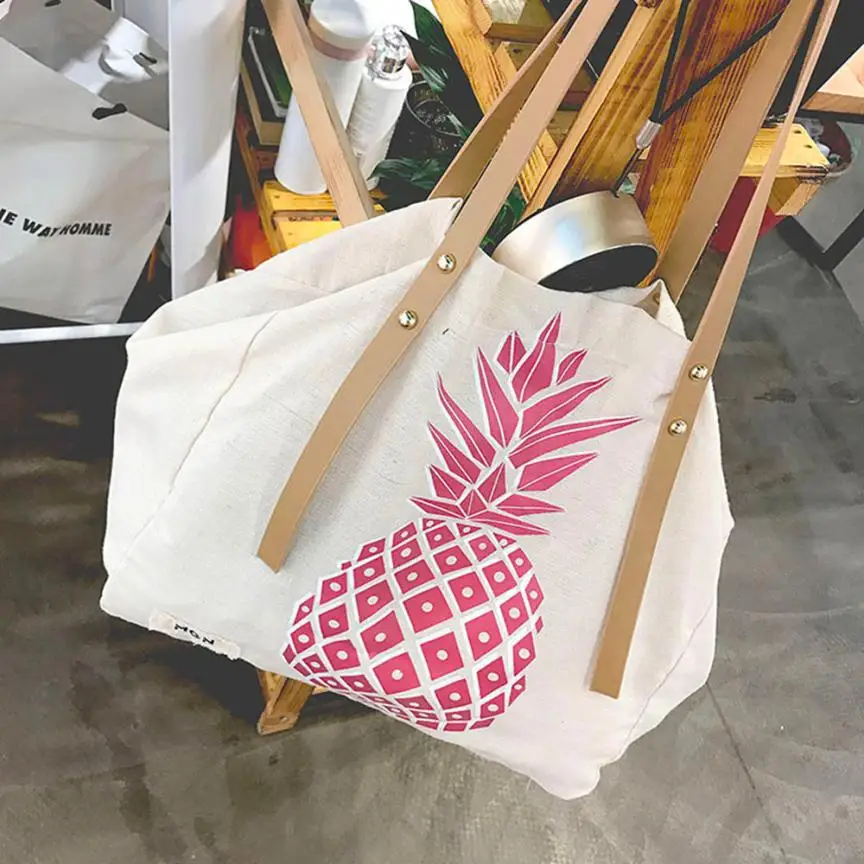 Women Canvas Pineapple Print Handbag:women's handbags