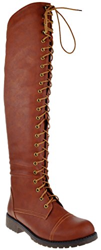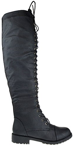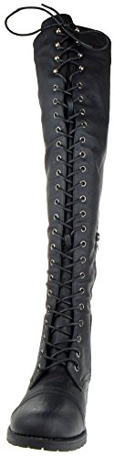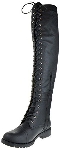 Product DescriptionFall ready with these lace-up combat boots that feature a side zipper for easy on/off and thigh high hook and loop lace action that provides a personalized fit that will keep you in style this coming season.0