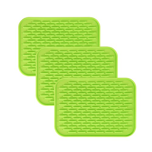 3 Pack Silicone Pot Holder,Drying Mat,Trivet,Pan Mat,Coaster,Draining Mat for Home Counter,Multipurpose Kitchen Rectangle Heat Resistant Hot Pad,Green