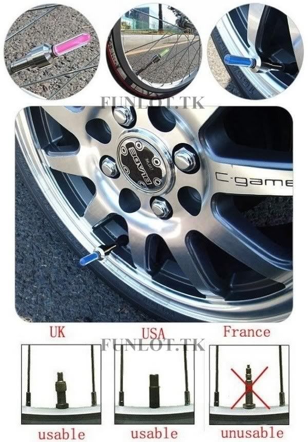 Motion activated, flash automatically when the vehicle moves. Easy installment, simply screw it into the tire valve stem of your car, bicycles or motorcycle in seconds. Super bright, energy saving and long lifespan LED. Increases night time and bad weather visibility for safety. Made of durable metal and plastic.