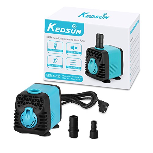 KEDSUM 130GPH(600L/H) Miniature Submersible Water Pump for FishTank ,Pond ,Aquarium, Ultra-quiet,Powerful Speed Flow, Fish Tank Powerhead for Water Fountain Hydroponic , 10W
