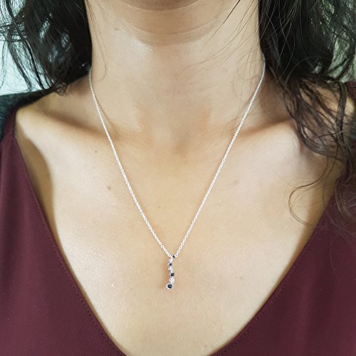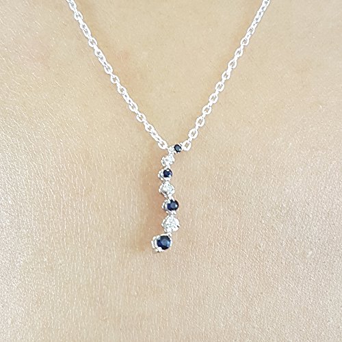 This lovely Pendant feature blue sapphire & white diamond in prong setting. All stones are sparkling and 100% natural. Blue Sapphire is very dark blue in color - Color varies from photo. It comes with 18 inch silver chain. SKU # K2818-18KW