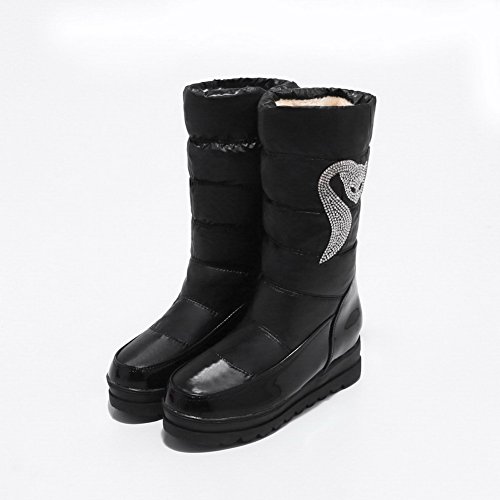 (BalaMasa)/Women's/Lace-Ups/DIRECT FROM USA/BalaMasa Womens Casual Slip-Resistant Rhinestones Wedges Patent-Leather Snow Boots ABL10207