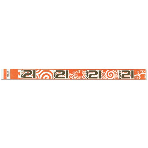 -. Binding : Office Product -. Brand : Precision Dynamics -. Color : Orange -. EAN : 0633090590979 -. Feature : Width 3/4" / Expressions wristbands feature fun, colorful pre-P.R.Inted designs that your guests will love!.Rotate colors and designs for different days of the week to keep your admissions secure / Made of DuPont® Tyvek® which is economical, water-resistant, and comfortable. / One size fits all. Strong adhesive closure with tamper-resistant feature that shreds if tampered with. Wristbands are serial numbered. -. HazardousMaterialType : Unknown -. Label : Precision Dynamics -. Manufacturer : Precision Dynamics -. Model : NTX89-29-PDM -. MPN : NTX89-29-PDM -. PackageQuantity : 500 -. PartNumber : NTX89-29-PDM -. ProductGroup : Office Product -. ProductTypeName : OFFICE_PRODUCTS -. Publisher : Precision Dynamics -. Size : 3/4" -. Studio : Precision Dynamics -. Title : Tyvek Wristbands - Over 21 Pattern - Bar - Night Club - Alcohol Serving Events - Orange Color - 500 Pieces of Wristbands per Box -. UPC : 633090590979