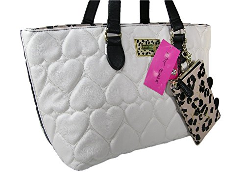 2 Piece Set=1 Purse and 1 Smart Phone Pouch Description: Black and ivory exterior with gold hardware and cheetah accents. Top snap closure. The interior is divided into 3 separate compartments with zipper pocket in the middle. The interior also includes a back wall zipper pocket and two slip pockets. Full lined interior. 18" length x 10" height Double straps with a drop of approximately 8 inches. Completing this bag is a smart phone case that measures 6 1/2 x 4 1/2". Tag Information: Style No: BR24820 Tote CheetahFeature