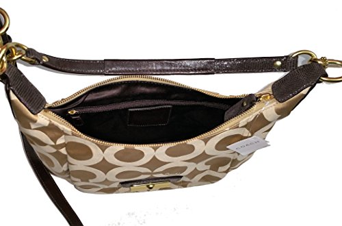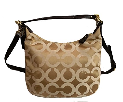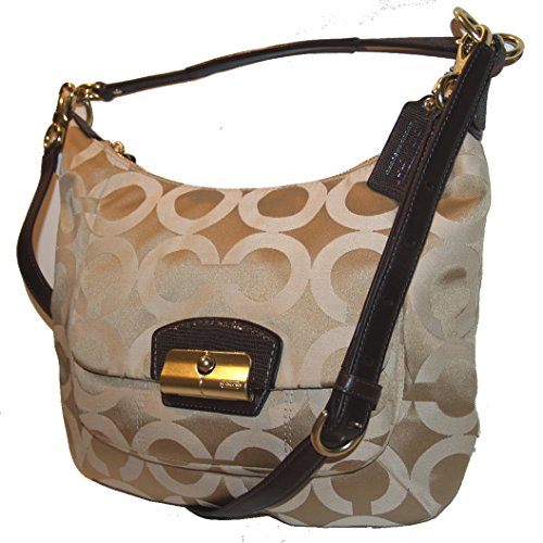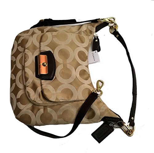 -. Brand : -. Department : womens -. EAN : 0886382106161 -. Feature : Op Art sateen fabric with leather trim / Inside zip pocket and multifunction slip pockets / Approximate 12.5" (L) x 9" (H) x 3" (W), detachable longer strap included for shoulder or crossbody wear / Zip top closure, fabric lining, outside front flap pocket with magnetic clasp / Creed serial number inside the bag -. PackageQuantity : 1 -. ProductGroup : Shoes -. ProductTypeName : HANDBAG -. Title : Kristin Signature Op Art Sateen Hobo Shoulder Bag Purse 19331 Khaki Mahogany -. UPC : 886382106161