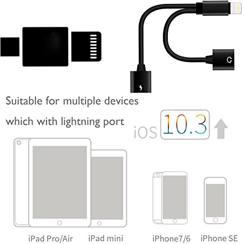 - 【Unique Design】Dual lightning Jack, made for iPhone 7/7 Plus, and support any lightning device that runs iOS 10 or later, compatible with the New iOS 10.3 or later version.