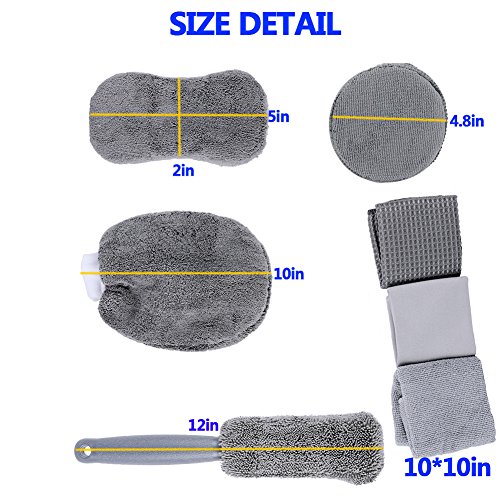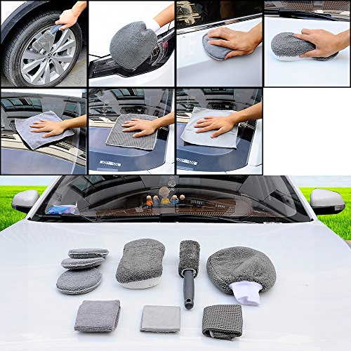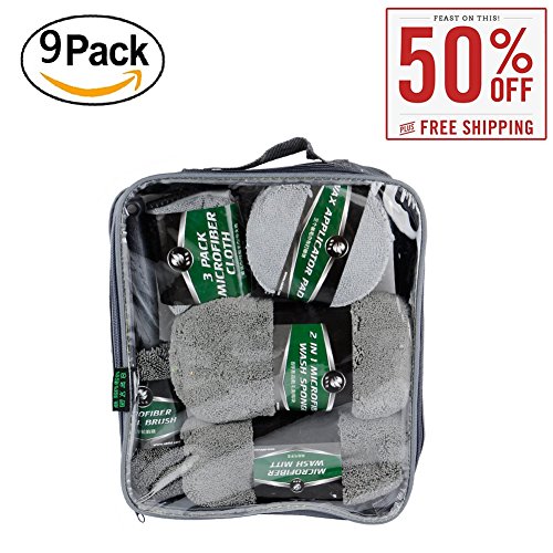 -. Feature : MICROFIBER CAR WASH DETAILING 9 PCS KIT - package includes 1 microfiber wheel brush, 1 microfiber wash mitt, 1 microfiber wash sponge, 3 microfiber wax applicator pads and 3 microfiber cloths. / PREMIUM MICROFIBER MATERIALS - That will not scratch car surfaces or leave lint and debris behind. / DURABLE - All pieces can be rinsed and reused, each sponge can wash and wax your vehicle up to 8 times. / GREAT CLEANING AND DETAILING KIT idea for the car enthusiast. This cheaning kit is made convenient to completely car washing! / 3 KINDS OF TOWELS - Warp knitted towel, Glass towel, Waffle shaped towel designed for Cars Vehicle Glass Clean.