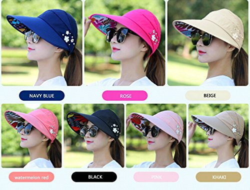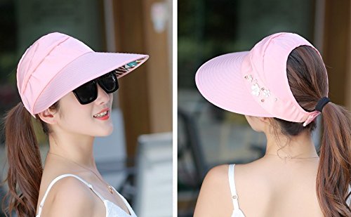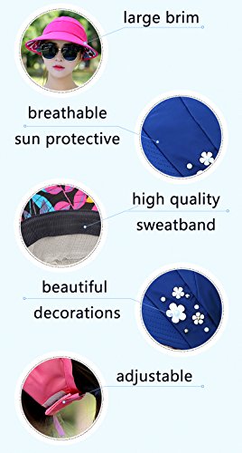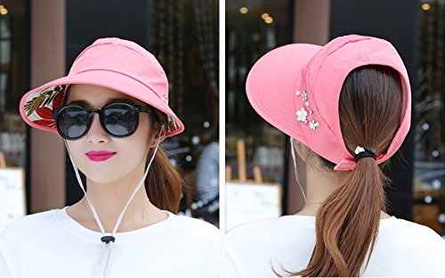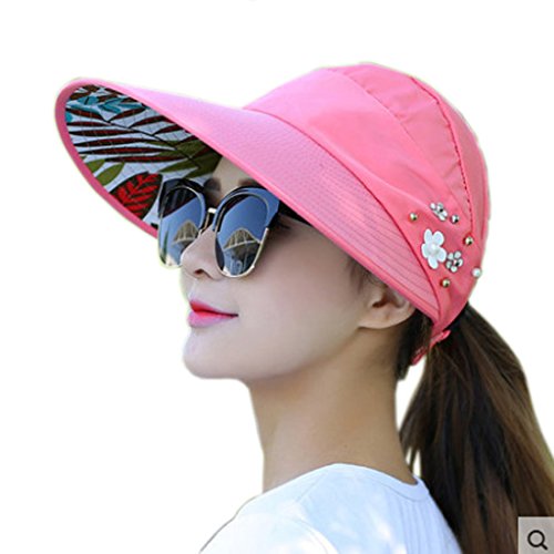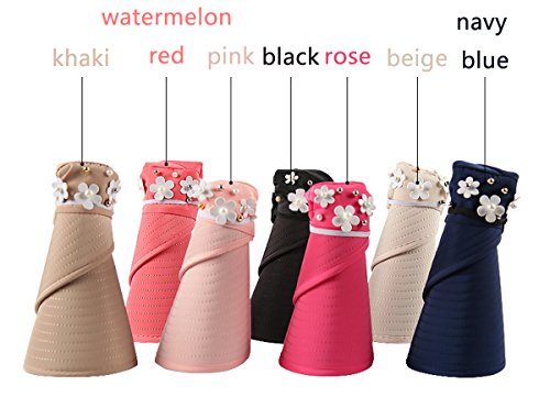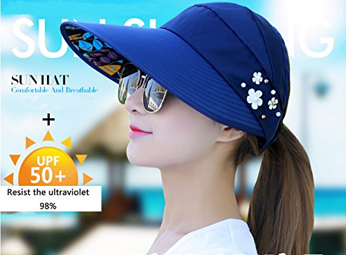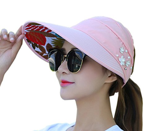 Womens Large Wide Sun Cap With Pearl Decoration Brim Foldable UPF 50 Beach Sun Hat Summer Beac...