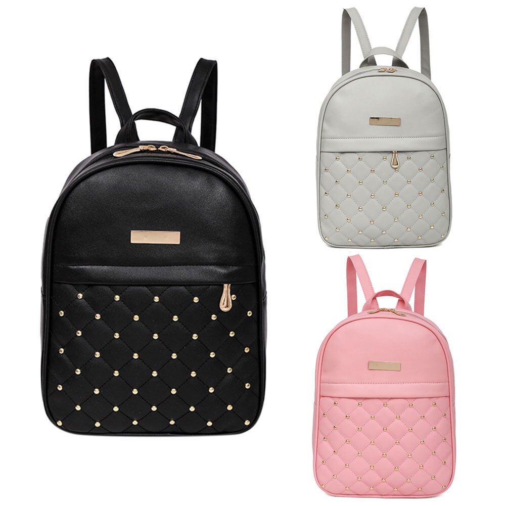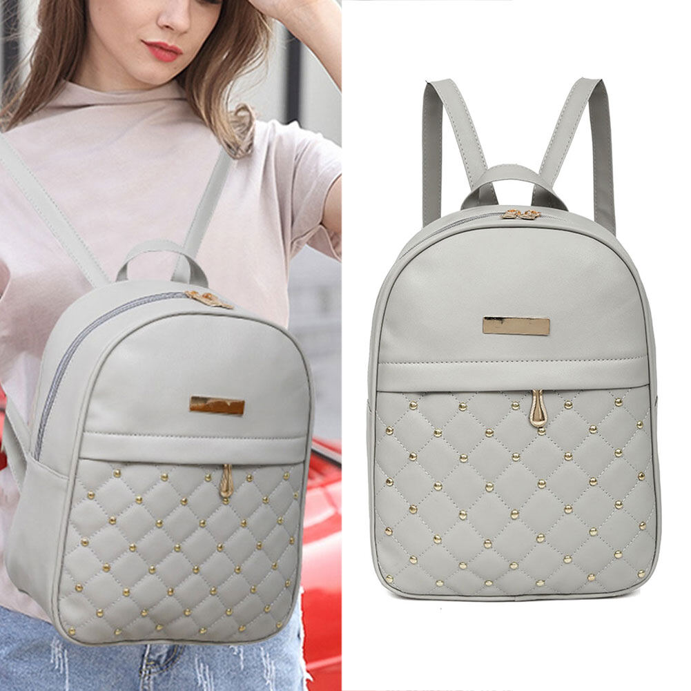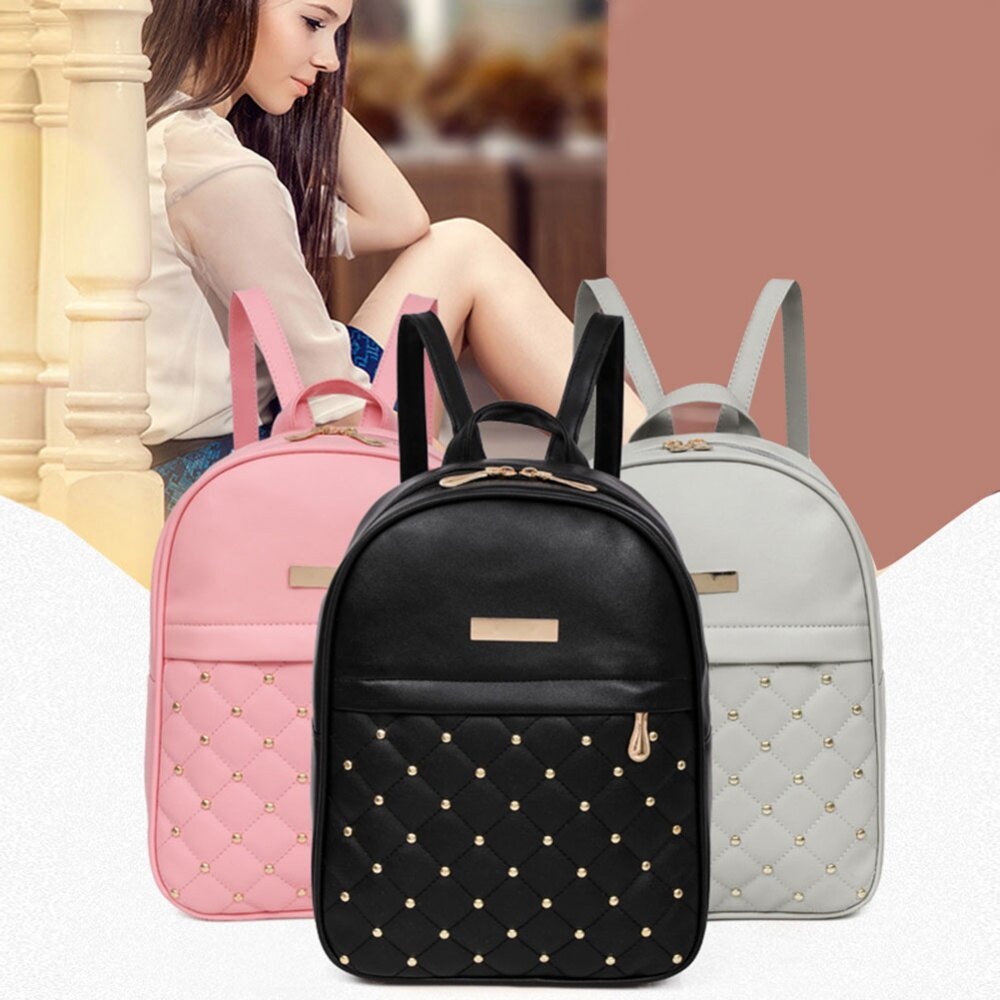 2017 New Fashion Women PU Leather Backpack Casual Bead Travel School Backpack