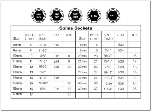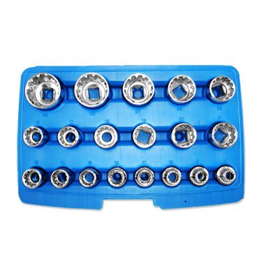- Feature : Heavy duty sockets manufactured Chrome-Vanadium Steel, heat treated, mirror polished / 1/2-inch drive set with 19 sockets in metric sizes / Perfect for removing stripped, rounded, rusted and even damaged nuts and bolts / 5-In-1: 4 points, 6 points & 12 points on MM, 6 points on SAE and E-Torque / Sizes includes: 6, 7, 8, 9, 10, 11, 12, 13, 14, 15, 16, 17, 18, 19, 20, 21, 22, 24mm