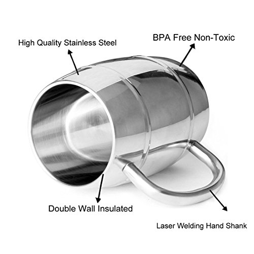 ★ KEEPS YOUR DRINKS HOT OR COLD - Double-walled design keeps your coffee hot or your beer cold. When filled with a hot drink, the outer wall will stay cool to the touch. When filled with a cold drink, you won't get condensation or sweating on the outer wall.
