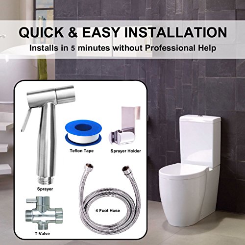 Premium Stainless Steel Bathroom Handheld Bidet Toilet Sprayer - Shattaf Sprayer Best Used for Personal Hygiene and Potty Toilet Spray - Perfect Bottom Cleaner Spray & Shower Attachment, by Aqua Nexis