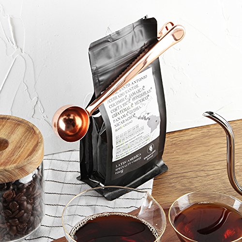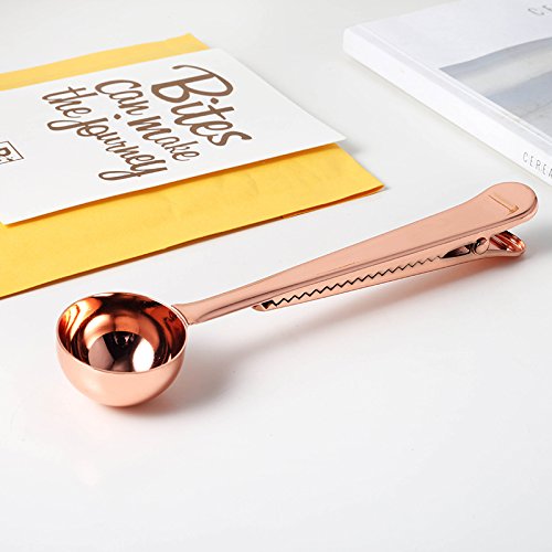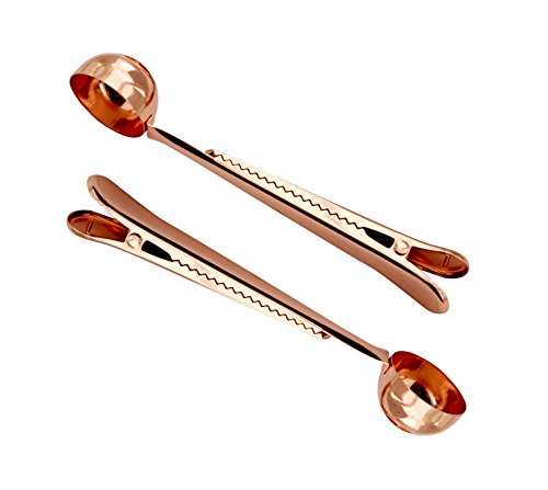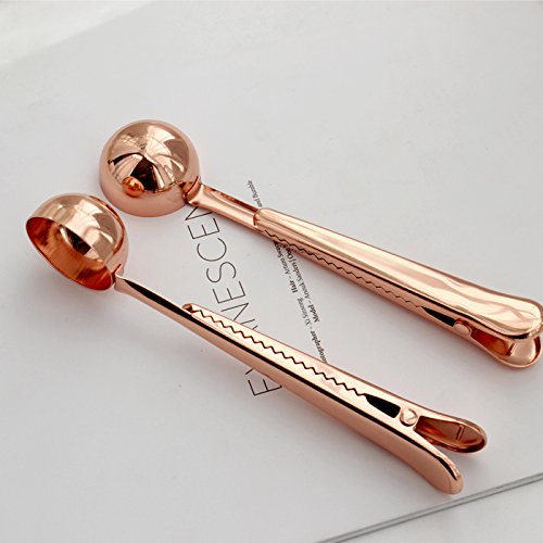 Coffee Measuring Spoon Sealing Clips, Two-in-one Long Handle Metal Scoops Bag Clips from Hoocozi, 2Pcs, Rose Gold, 1 Teaspoon