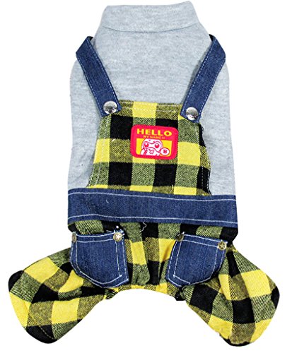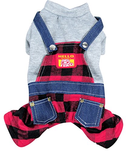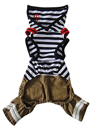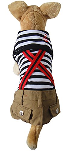 -. Binding : Misc. -. Brand : Woo Woo Pets -. Feature : Bust(inch)--S:14 M:16 L:18 XL:20 Length(in)--S:9 M:11 L:12 XL:13 Neck Circumference(in)--S:9 M:11 L:13 XL:14 / Soft material to keep your doggie warm and fashionable in cold weather / Made of high quality cotton,durable and comfortable / With a pet costume in unique shape, dogs will be ready for parades, parties, or just having fun / Suggest handwashing -. Label : Woo Woo Pets -. Manufacturer : Woo Woo Pets -. PackageQuantity : 1 -. ProductGroup : Pet Products -. ProductTypeName : PET_SUPPLIES -. Publisher : Woo Woo Pets -. Studio : Woo Woo Pets -. Title : Woo Woo Pets New Arrival Pet Dogs Soft Stripe Thick Four-leg Jumpsuit Jeans Overalls