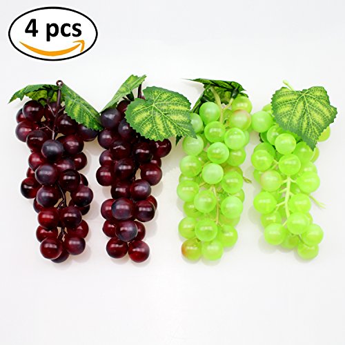 DYWISHKEY Artificial Green & Purple Grape (4 Bunches)