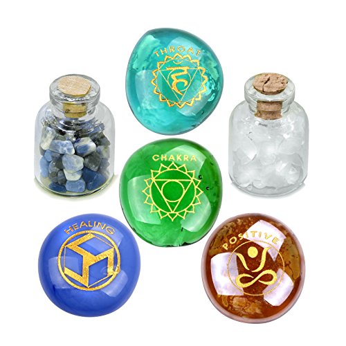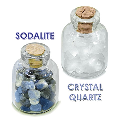 Throat Chakra Magic Positive Healing Inspirational Amulets Glass Stones Sodalite and Quartz Bottles Set