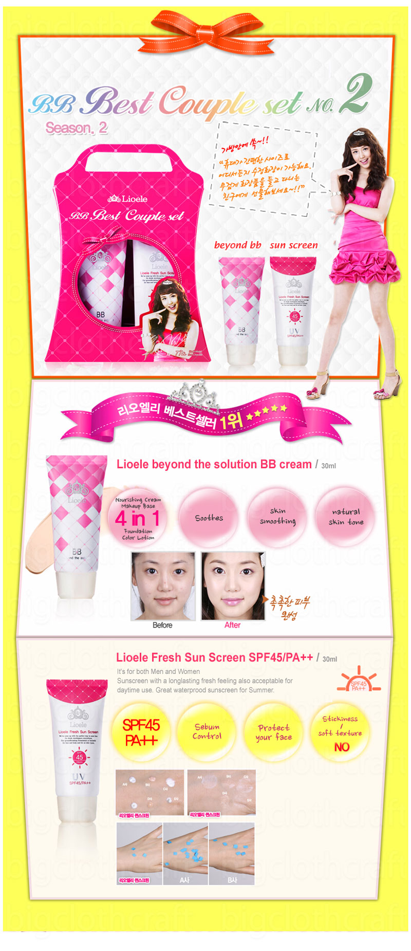 Lioele BB Best Couple Set No.2(Beyond the Solution BB Cream 30ml & Fresh Sun Screen 30ml]