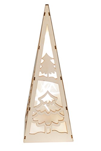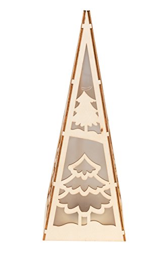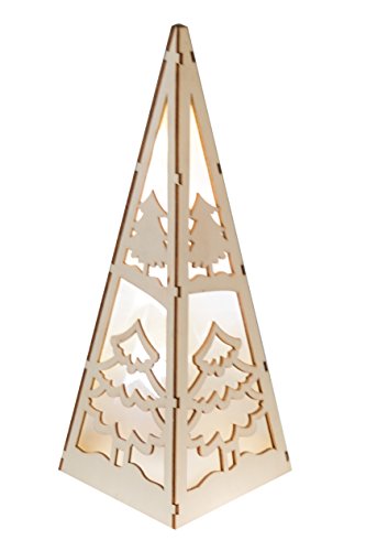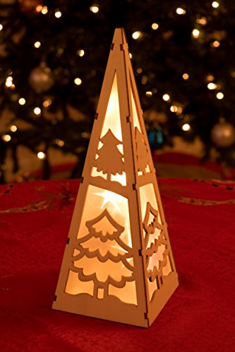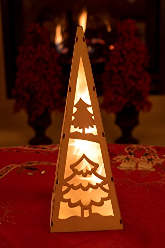 Christmas Flameless LED Candle Table Top Pyramid Lantern by Clever Creations | Durable Painted Wood | Christmas Trees Design | Measures 4.25" x 4.25" x12" | Battery Powered