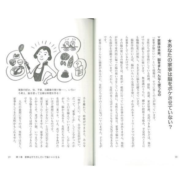 【商品説明】 定価(税込み):1,404円 値引き:10% OFF 本書は、脳トレ界に革命を巻き起こした脳科学者、加藤俊徳の初の「家事で」脳トレする本。「記憶系」「視覚系」「感情系」など8つの「脳番地」別に、行うべきトレーニングがわかりやすいイラスト入りで紹介されています。そもそも家事は脳をさまざまに駆使するもの。たとえば料理ひとつとっても、献立を決めるときは食べる人の好みや状況を考慮することで脳の「理解系」を活用。 バーゲンブック 新品 特価 格安 ホーム ライフ 家事 整理 収納 料理 イラスト 脳トレ トレーニング 科学 | |