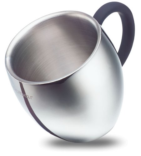 This double wall coffee cup prevents condensation on the outside and the stainless steel construction makes it much tougher than fragile double wall glass mugs. This mug will work very well with a stainless steel tea infuser for brewing your favorite tea!