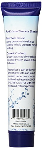 ReleaseDate : 2015-02-10 Studio : American Biotech Labs Publisher : American Biotech Labs Binding : Health and Beauty Product Description American Biotech Labs ASAP Ultimate Skin And Body Care Gel. Made with 24 ppm patented SilverSol Technology. Designed to help promote natural healing of the skin. Ideal to be used daily with both children and adults. Helps to renew, soften, soothe, and rejuvenate the skin. Disclaimer: These statements have not been evaluated by the FDA. These products are not intended to diagnose, treat, cure, or prevent any disease. 0