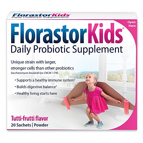 Each powder sachet contains the same dose as one Florastor capsule and is naturally sweetened with tutti-frutti flavoring to keep taste buds happy. With just one sachet 1-2 times daily, FlorastorKids help support a healthy digestive tract– where 70% of your child’s immune system lives.*1,2 Florastor is a gluten-free, non-GMO, lactose-free and vegetarian probiotic. Our patented freeze-drying process gives Florastor a three-year shelf life protecting the live cells without refrigeration. It fits perfectly into your family’s busy schedule and your child’s active lifestyle. Help keep your little one’s digestive tract on track, with FlorastorKids.