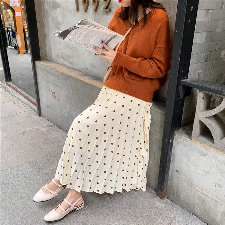 程よい大きさのドット柄が大人可愛い着こなしが叶うプリーツスカートです♪