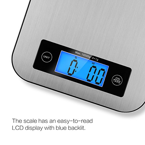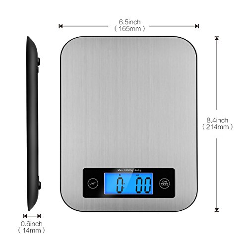 Digital Kitchen Scale, TOBOX Multifunction Stainless Steel Food Scales with LCD Display and Tare Function for Baking and Cooking, 22Ib 10kg